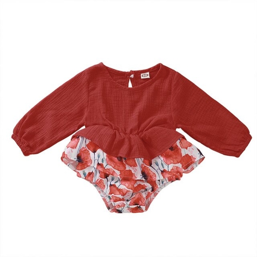 Model Number: Baby Boys Girls Long Sleeve Floral Print Ruffles Romper Bodysuit Cloth
