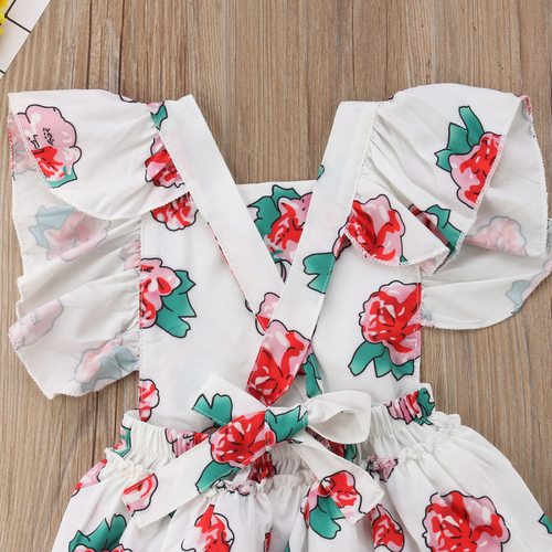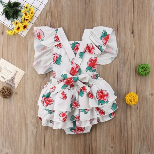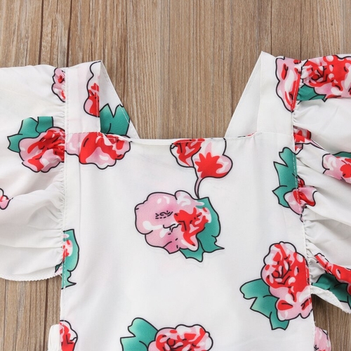 Model Number: Baby Girls Flowers Flutter Sleeve Romper