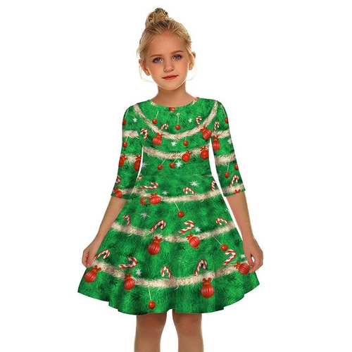 Model Number: Teen Kids Girls Christmas Xmas Cartoon Print 3D Digital Dress Party
