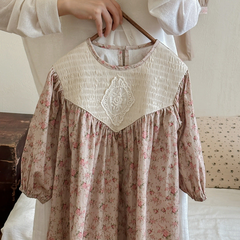 Introducing the Design Autumn Girls Fashion Floral Long Puff Sleeves Crew Neck Dress, a delightful addition to your little girl's wardrobe. This charming dress is designed with a beautiful floral pattern that captures the essence of autumn while providing a stylish look for any occasion. Made from high-quality cotton, it ensures comfort and breathability, making it perfect for active little ones.
