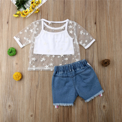Fashion New Summer Kids Baby Girls Outfits Mesh