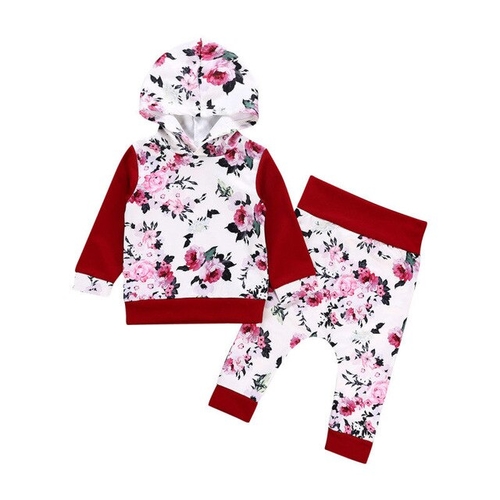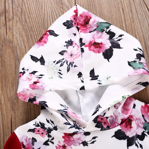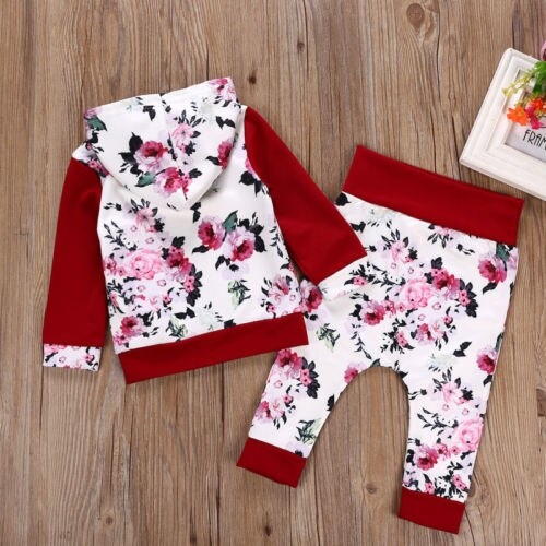 Model Number: Baby Girls Floral Hooded Long Sleeve Tops Long Pants 2Pcs