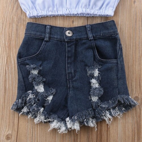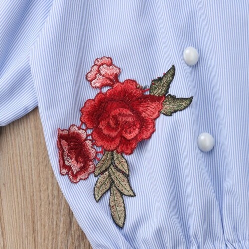 Model Number: Baby Girls Striped Floral Off-shoulder Tops Short Pants