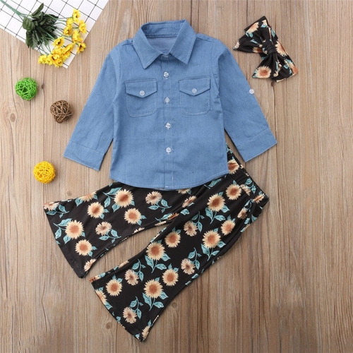 Dropship Fashion Toddler Kids Baby Girls Long Sleeve Denim