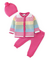 This full sleeves baby sweater set features stripes and a matching cap, ensuring warmth and style for your little one.