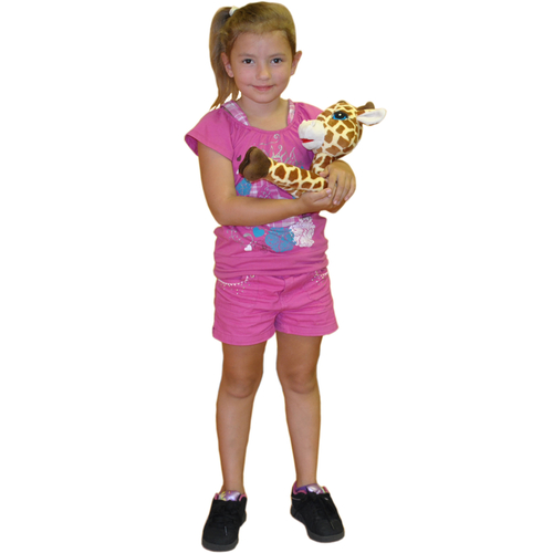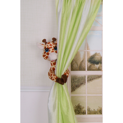 This cute giraffe and zebra have an elastic loop on the back of their heads so you can hang them on your wall and use them as curtain tiebacks! Then just wrap the arms around the curtains and the velcro on the hands holds them in place! They're also great on strollers, changing tables, and car seats to keep your little ones busy during the day!