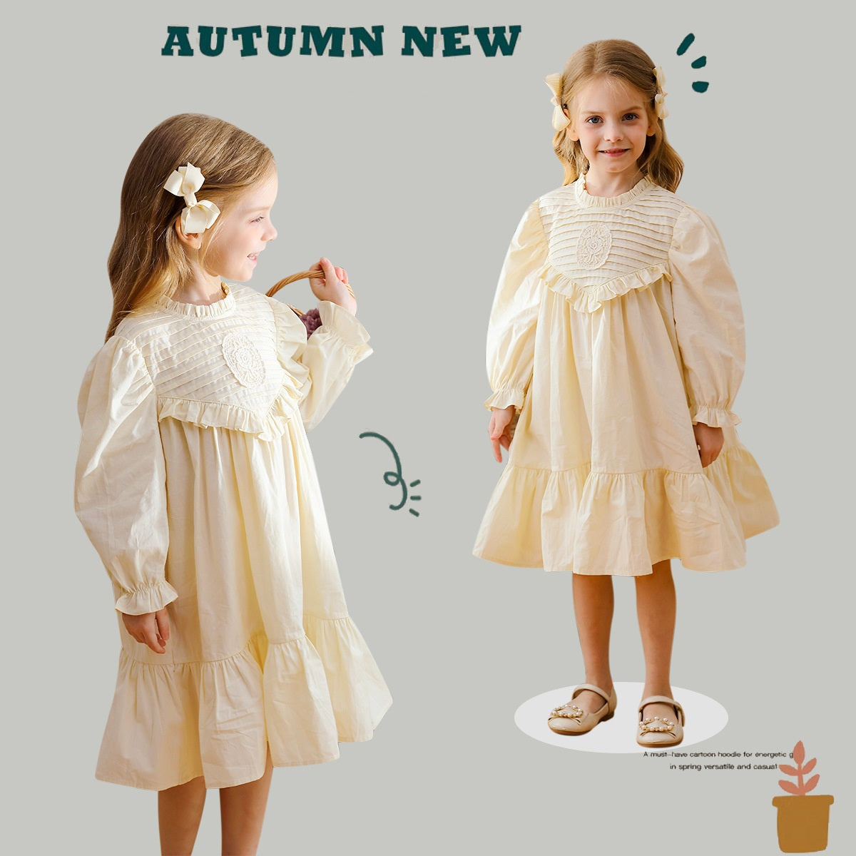 Designed specifically for the autumn and spring seasons, this dress provides the right amount of coverage while remaining lightweight. The apricot color is perfect for the fall palette, allowing your child to embrace the season's hues while staying fashionable.