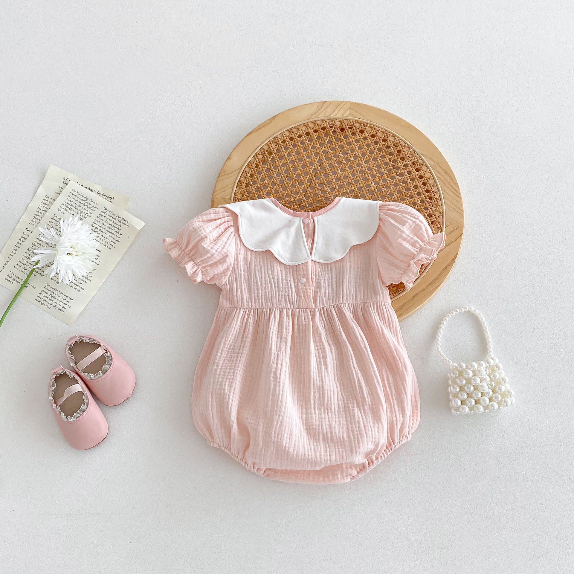 Parents will appreciate the ease of care that comes with this outfit. The cotton material is machine washable, making it simple to clean after a day of play. The vibrant pink color and embroidered design are durable, ensuring that this outfit will remain a favorite in your child's wardrobe for many summers to come.