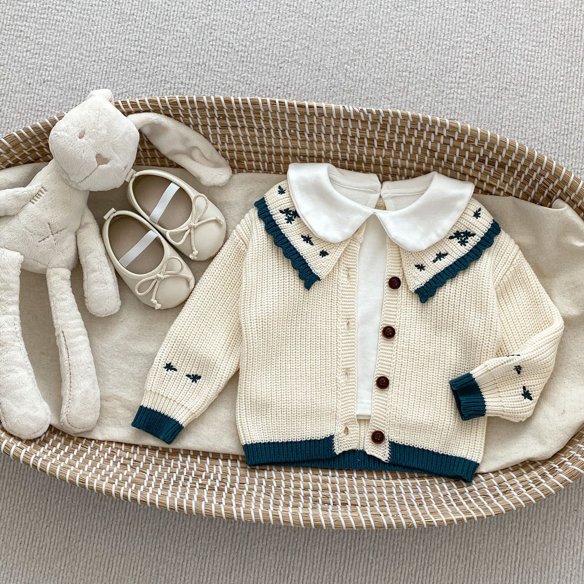 In summary, this cardigan is a must-have for any baby girl's wardrobe. With its soft cotton material, stylish embroidery, and comfortable fit, it is perfect for any occasion. Don't miss out on this adorable piece of knitwear that combines fashion and functionality!