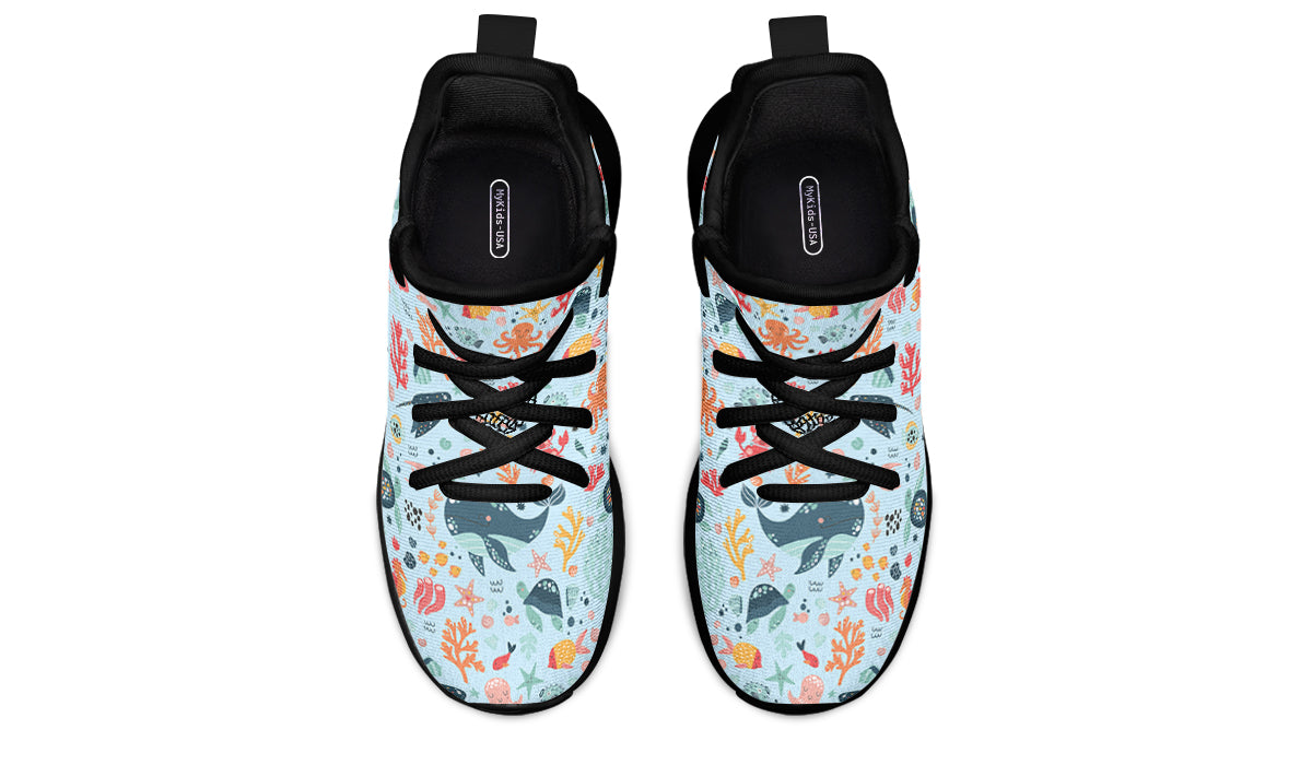 The amazing colors and print quality of our Kids Shoes Sneakers Sea Animals are sure to catch the eye. With an all-over customized print featuring various sea creatures, these sneakers are not just footwear; they are a fun fashion statement. Your child will love showing off their unique style while enjoying the comfort these shoes provide.