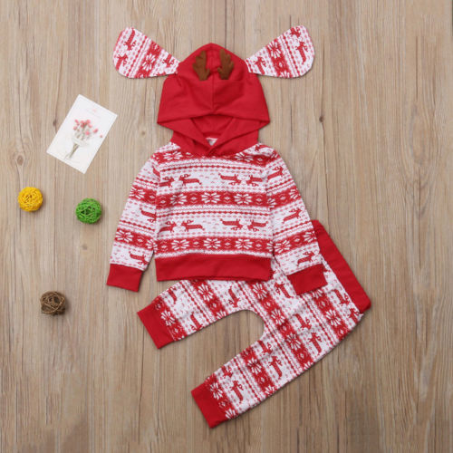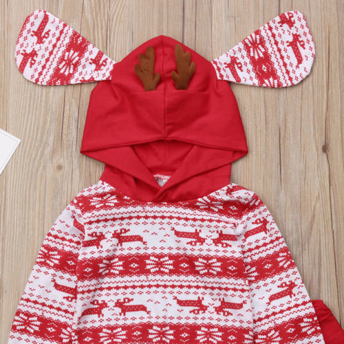 Kids Xmas Hooded Clothes Sets Infant Baby Boy Girl