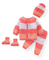 This knitted full sleeves front open sweater and pant set features a trendy color block design, complete with a cap and booties for a stylish look.