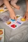 Sp_le ar vienu b_rnu. Novietojiet mazu_a priek__ vienu vai vair_kus sp__u d__us ar att_liem. Tuvum_ izkl_jiet caursp_d_gas plastik_ta kartes ar kont_r_m. L_dziet mazulim saska_ot kont_ras ar visiem sp_les laukum_ eso_ajiem att_liem. Piev_rsiet b_rna uzman_bu priek_metu formai.