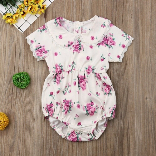 Department Name: Baby Item Type: Bodysuits Style: Fashion Material: COTTON Gender: Baby Girls Pattern Type: Print Sleeve Length(cm): Short Collar: Peter pan Collar Model Number: baby romper Fit: Fits true to size, take your normal size