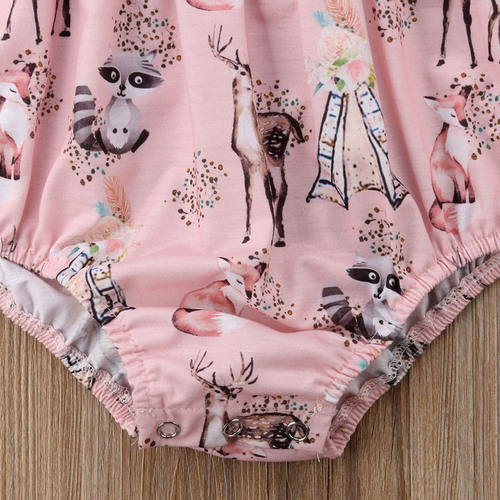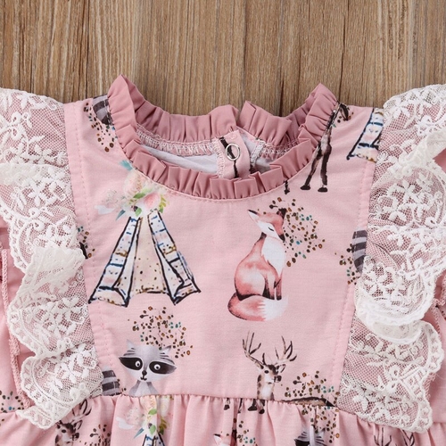 Model Number: Baby Girls Animal Print Long Lace Flying Sleeve Bodysuit