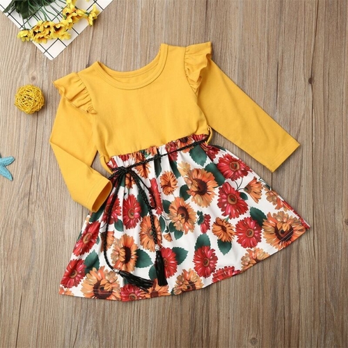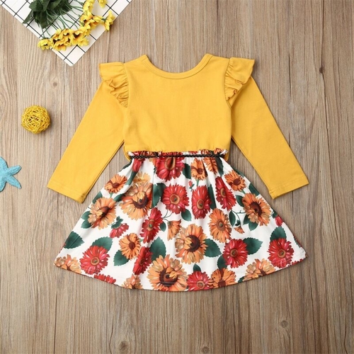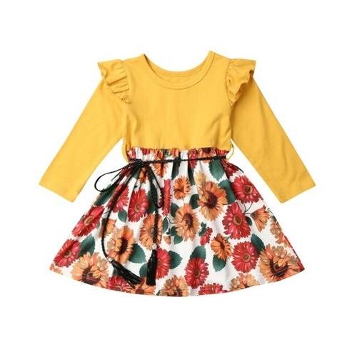 Lovely Kids Baby Girl Sunflowers Dress Ruffles