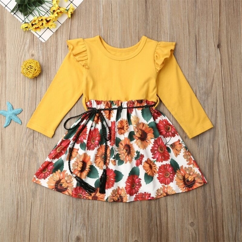 Dropship Lovely Kids Baby Girl Sunflowers Dress Ruffles
