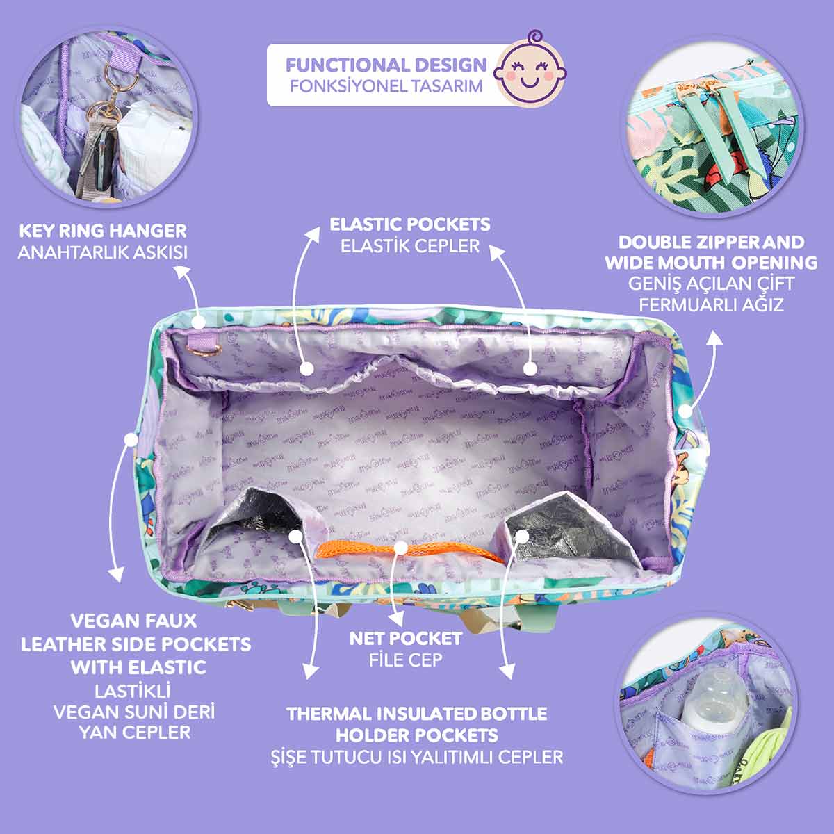 Die Milk&Moo Jungle Friends Wickeltasche ist in einem ansprechenden, mehrfarbigen Design erhältlich, das sowohl für Mütter als auch für Väter geeignet ist. Sie ist nicht nur funktional, sondern auch ein stilvolles Accessoire, das zu jedem Outfit passt. Hergestellt in Türkiye, steht die Marke Milk&Moo für Qualität und Stil, die Sie in jeder Situation begleiten werden.