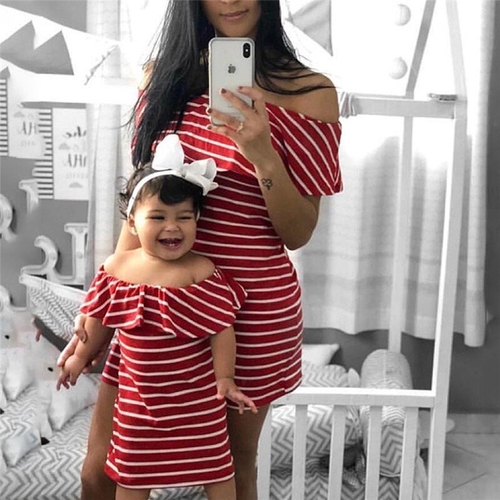 Item Type: Dresses Material: COTTON Pattern Type: Striped Style: Fashion Sleeve Length(cm): Short Fit: Fits true to size, take your normal size Department Name: Mother & Daughter
