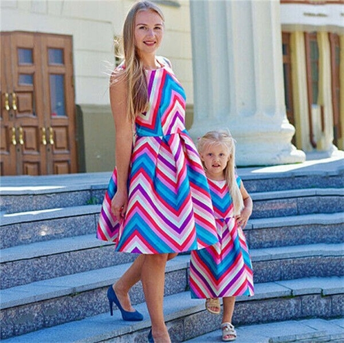 Style: Fashion Sleeve Length(cm): Sleeveless Pattern Type: Striped Department Name: Mother & Daughter Fit: Fits true to size, take your normal size Item Type: Dresses Material: Polyester