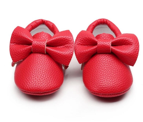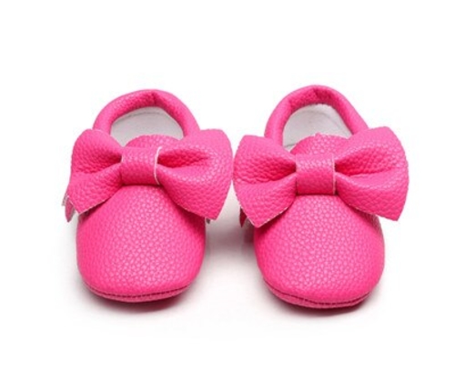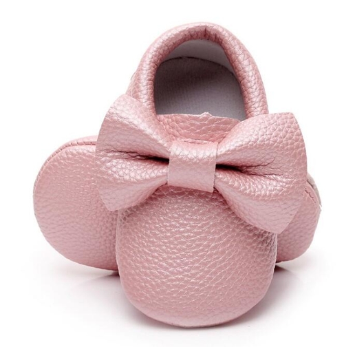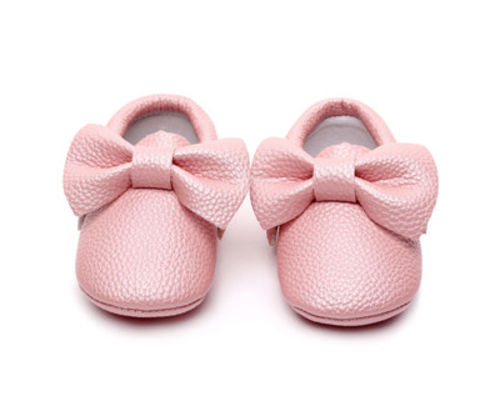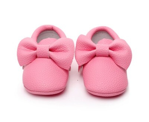 Dropship New style Pink PU Leather Baby Moccasins Bow soft