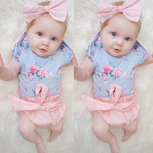 Newborn Baby Boy Girl Floral Romper Bowknot Shorts