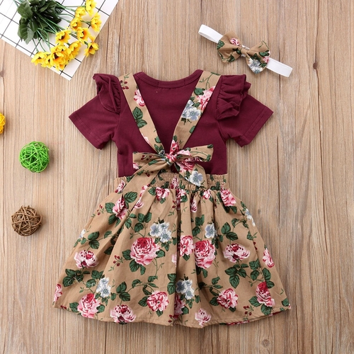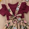 Material Composition: Fly Sleeve Romper+Floral Belt Dress
