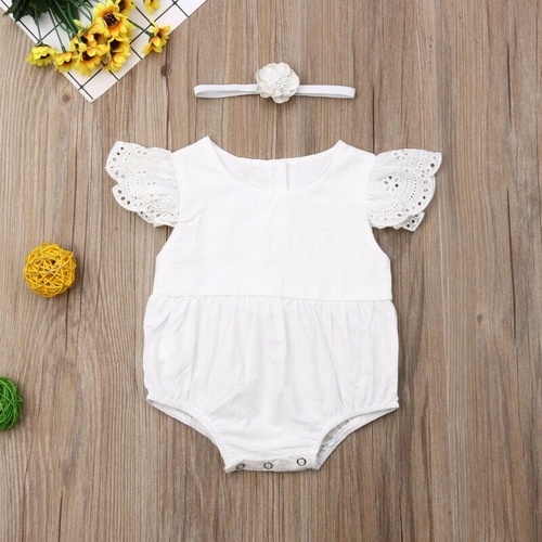 Material: COTTON Pattern Type: Solid Gender: Baby Girls Sleeve Length(cm): Sleeveless Collar: O-Neck Model Number: Baby Romper Fit: Fits true to size, take your normal size Closure Type: Covered Button Material Composition: Cotton