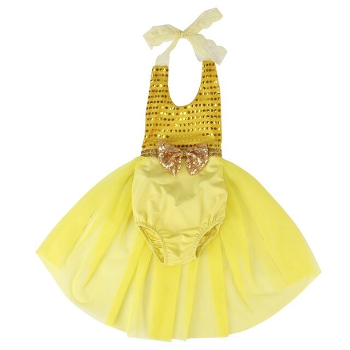 Newborn Baby Girl Lace Halter Sequins Bow Bodysuit