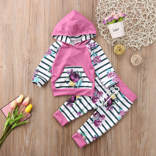 Dropship Newborn Infant Baby Boy Girl Clothes Stripe Hooded