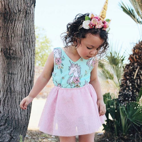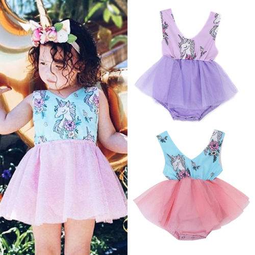 Dropship Newborn Toddler Baby Girls Sleeveless Unicorn Lace