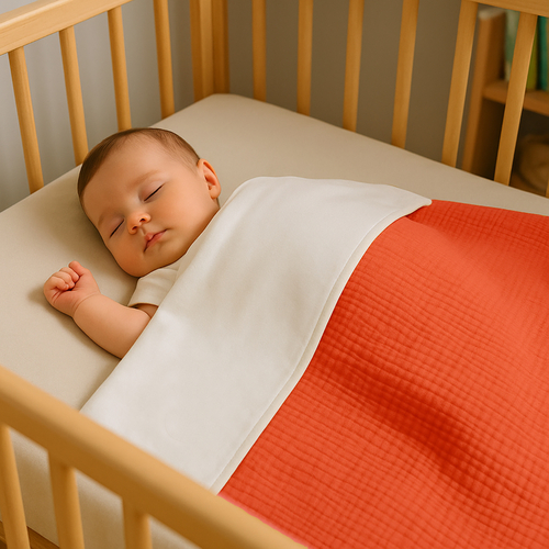 It is the ultimate comfort item to ensure peaceful and restful sleep for your child. This double-sided blanket is made of organic cotton fleece and gauze, both GOTS certified, which ensures the highest quality and safety for your child.
