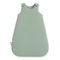 The fabric is made of 100% organic double gauze cotton. The sleeping bag features clips at the shoulders and a full-side zipper for easy use.