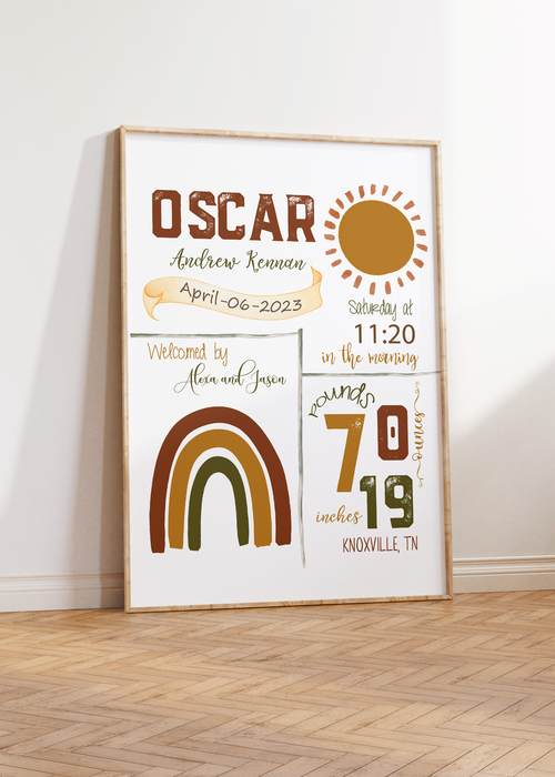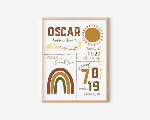 This adorable rainbow theme birth announcement makes a great addition to any nursery, make one for yourself or give it as a gift!