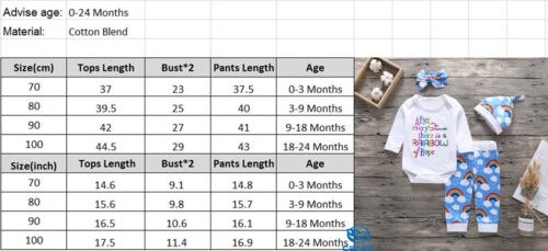 Model Number: Kids Baby Boy Girl Rainbow Printed 4Pcs Sets