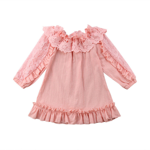Dropship Princess Kid Baby Girl Dress Lace Floral Off