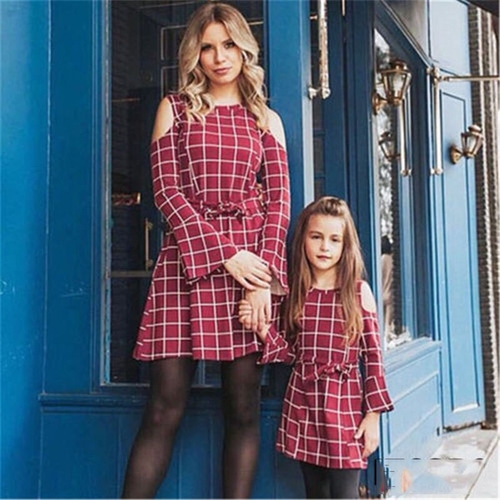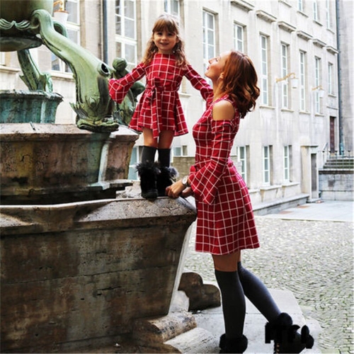Material: Polyester Style: Fashion Sleeve Length(cm): Full Department Name: Mother & Daughter Item Type: Dresses Pattern Type: Plaid Fit: Fits smaller than usual. Please check this store's sizing info