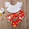 Material: COTTON Gender: Girls Style: Fashion Sleeve Length(cm): Short Closure Type: Pullover Pattern Type: Floral Sleeve Style: REGULAR Collar: O-Neck Fit: Fits true to size, take your normal size Department Name: Children Item Type: Sets