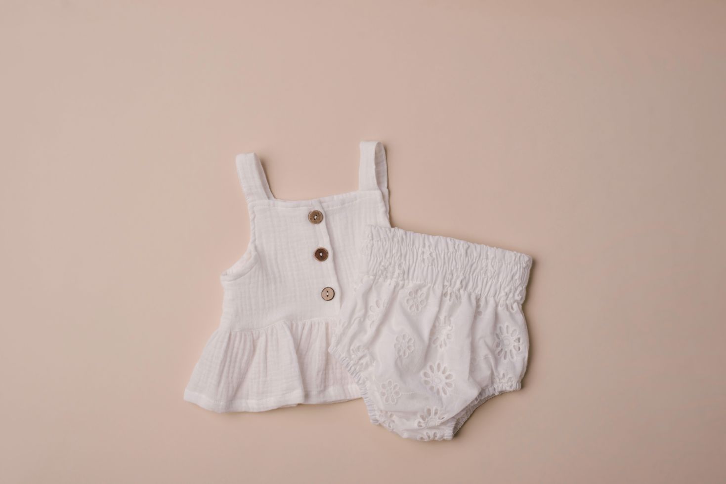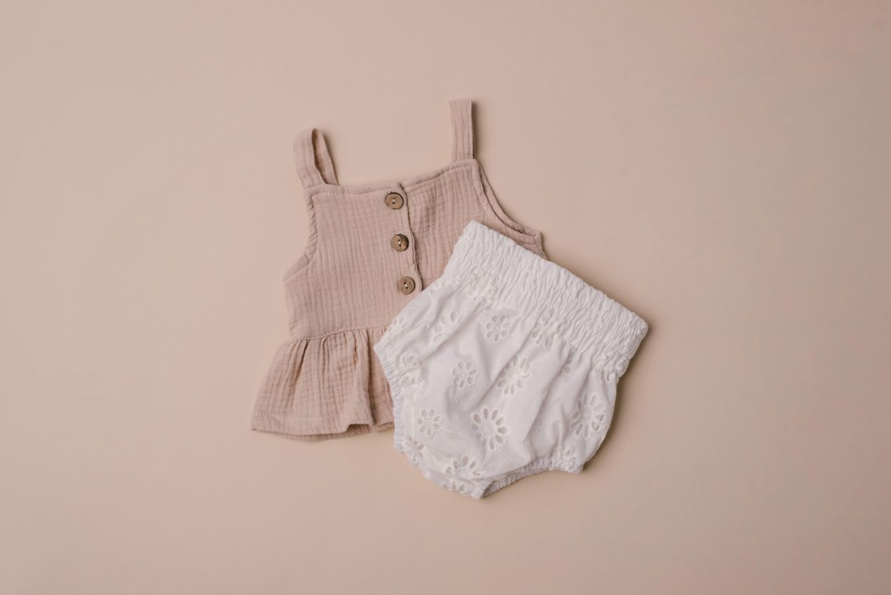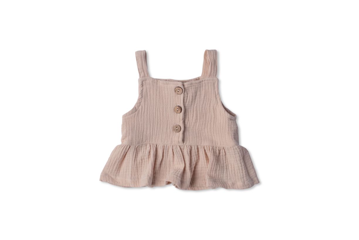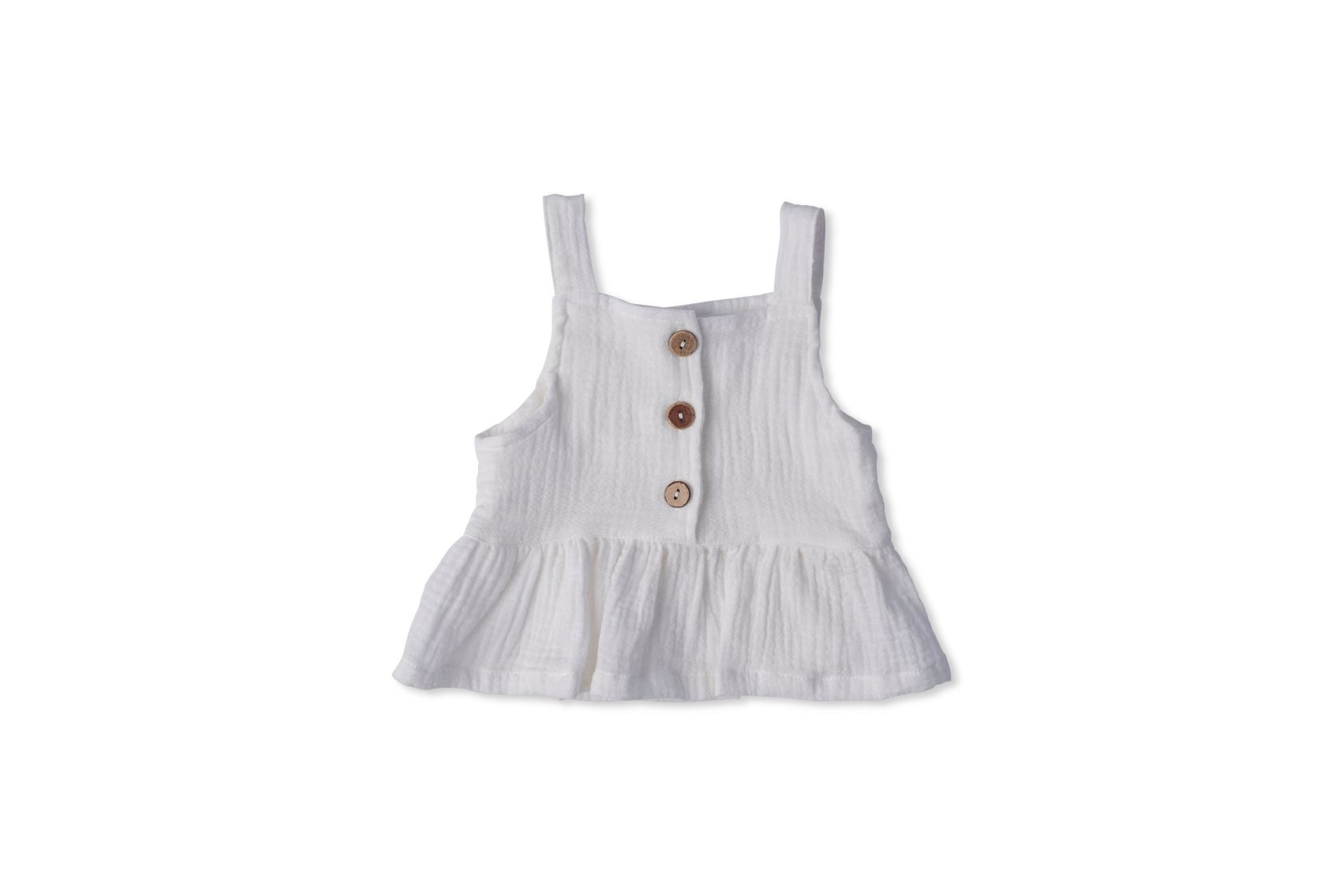 The Ruffle Tank comes in two classic colors: beige and white. These neutral shades make it easy to mix and match with other clothing items, ensuring that your little one always looks stylish. Whether paired with colorful skirts or simple shorts, the Ruffle Tank is a versatile piece that can adapt to any outfit.