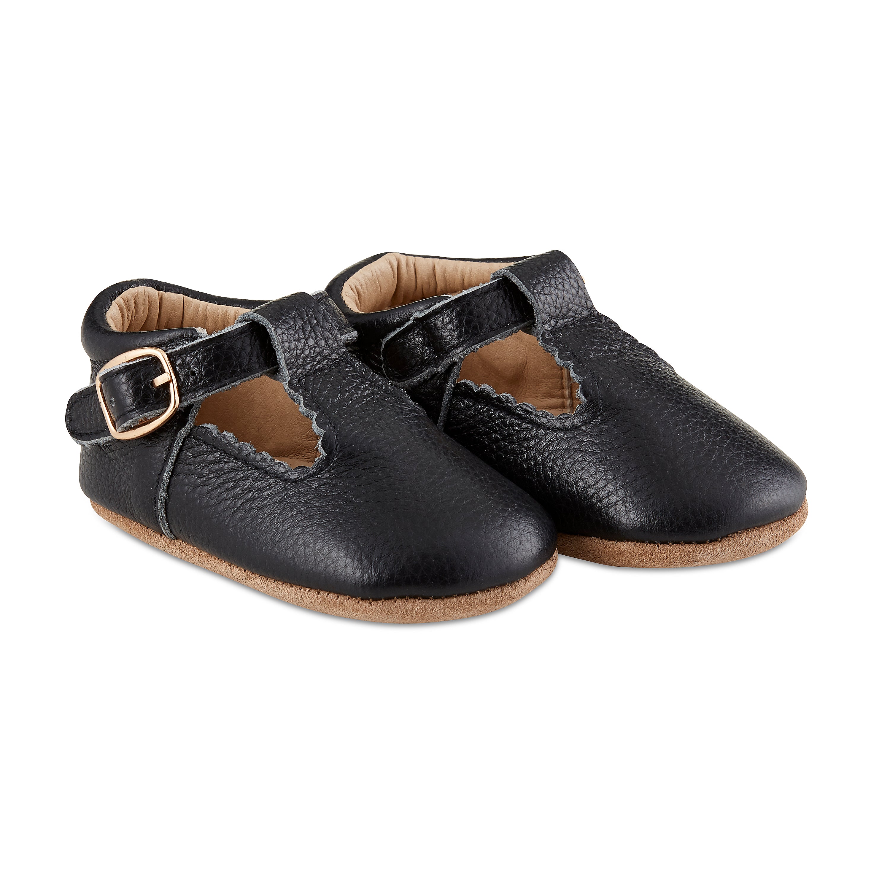 Introducing our Soft-Sole Leather Mary Jane Moccasins in black, a modern twist on a classic shoe design that is perfect for your little one's wardrobe. These adorable baby shoes are crafted from high-quality leather, ensuring both style and comfort for your child's delicate feet. The neutral black color makes them versatile enough to pair with any outfit, whether it's for everyday wear or a special occasion.