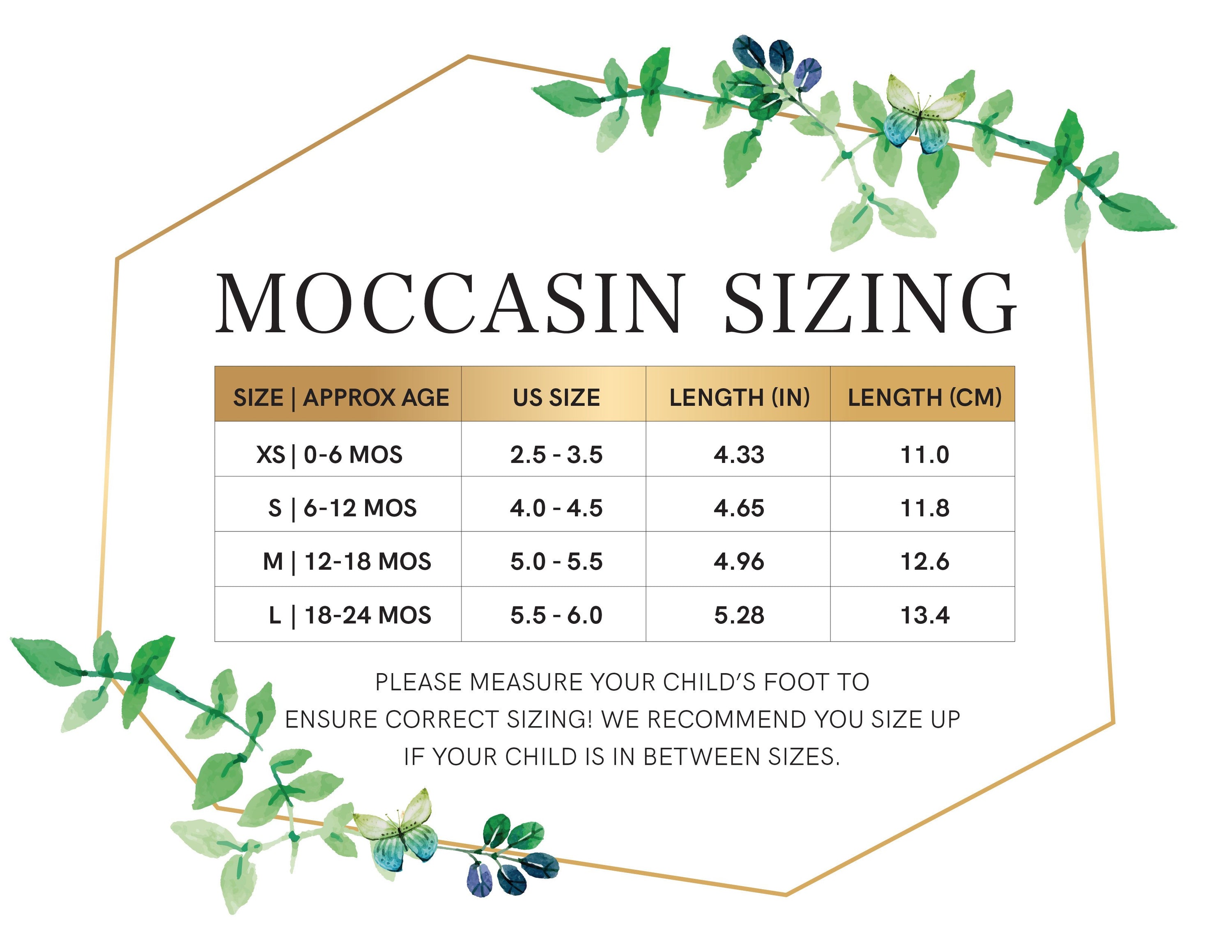 When it comes to children's footwear, sizing is crucial. Our Soft-Sole Leather Mary Jane Moccasins come with a size chart available in the product images. It is recommended to leave 1/4-1/2 inch of wiggle room to ensure comfort and growth. This thoughtful sizing approach allows for the natural growth of your child's feet while providing the necessary support.