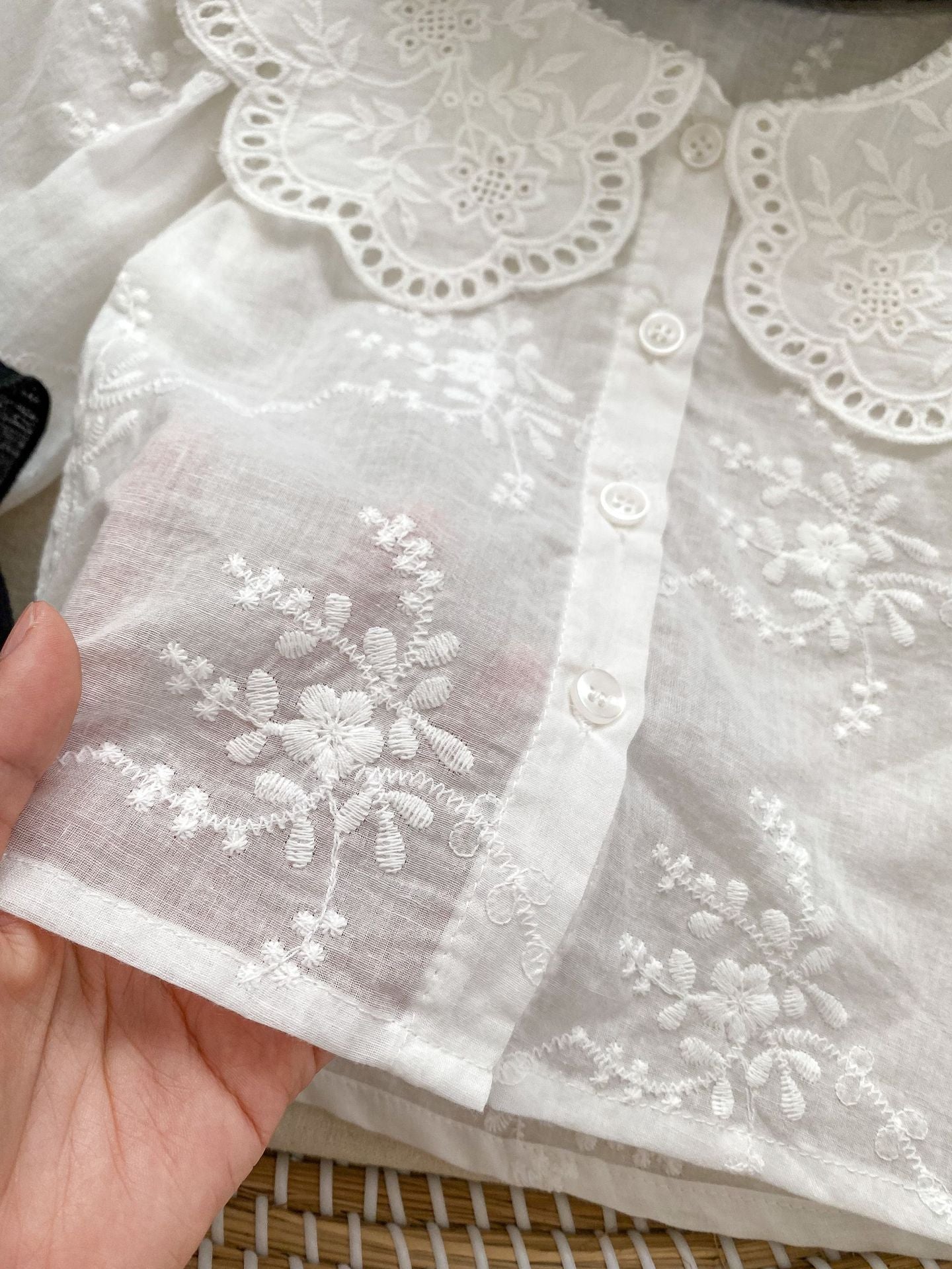 The floral white shirt features intricate embroidery that adds a touch of elegance to the overall look. The black skirt complements the shirt beautifully, creating a chic contrast that is sure to turn heads. This outfit is not just about looks; it’s designed to make your little girl feel confident and stylish.