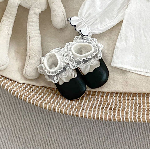Dropship Spring Baby And Kids Girls Vintage White Shirt And Black Leather Shoes