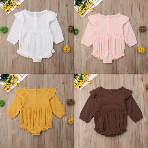 Model Number: Bodysuits Material: COTTON Material: Linen Gender: Baby Girls Style: Fashion Sleeve Length(cm): Full Pattern Type: Solid Collar: O-Neck Fit: Fits true to size, take your normal size Department Name: Baby Item Type: Bodysuits