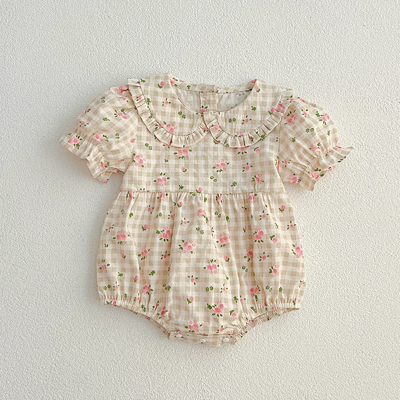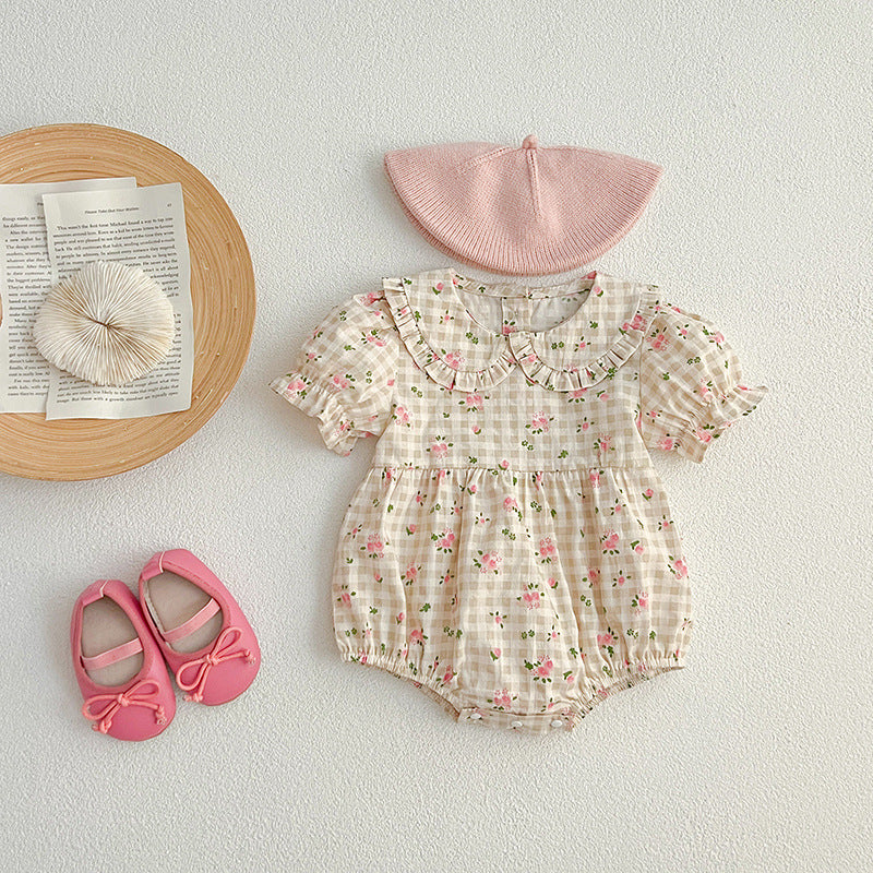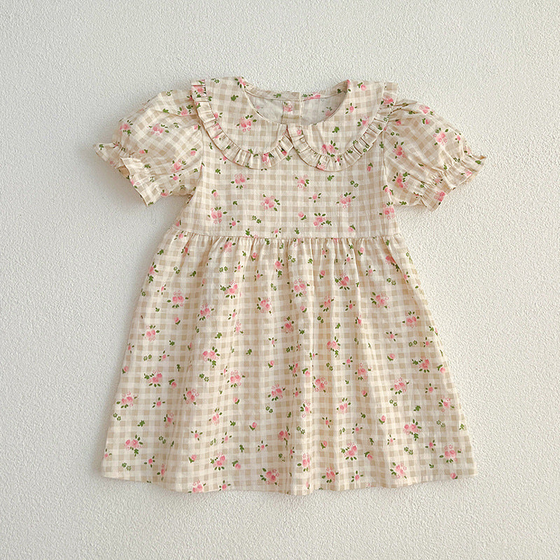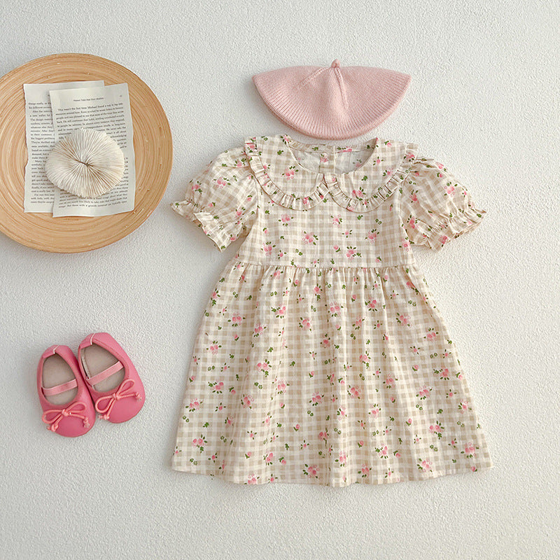 This charming outfit is available in two lovely colors: pink and apricot. Both colors are perfect for summer and will brighten up your child's wardrobe. The floral and plaid patterns add a touch of whimsy, making it a favorite among both kids and parents.