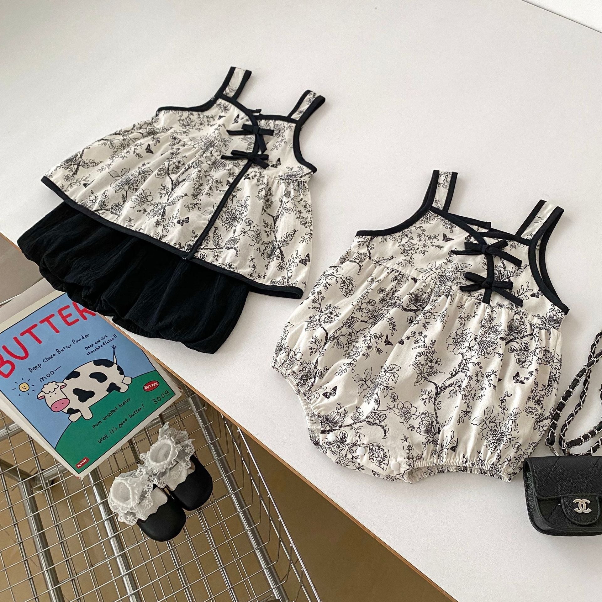 These adorable onesies come in three delightful colors: White, Black, and Beige. Each color option allows you to choose the perfect match for your little girl's personality and style. Whether you prefer a classic white for a fresh look, a chic black for a modern touch, or a neutral beige for versatility, these onesies have you covered.