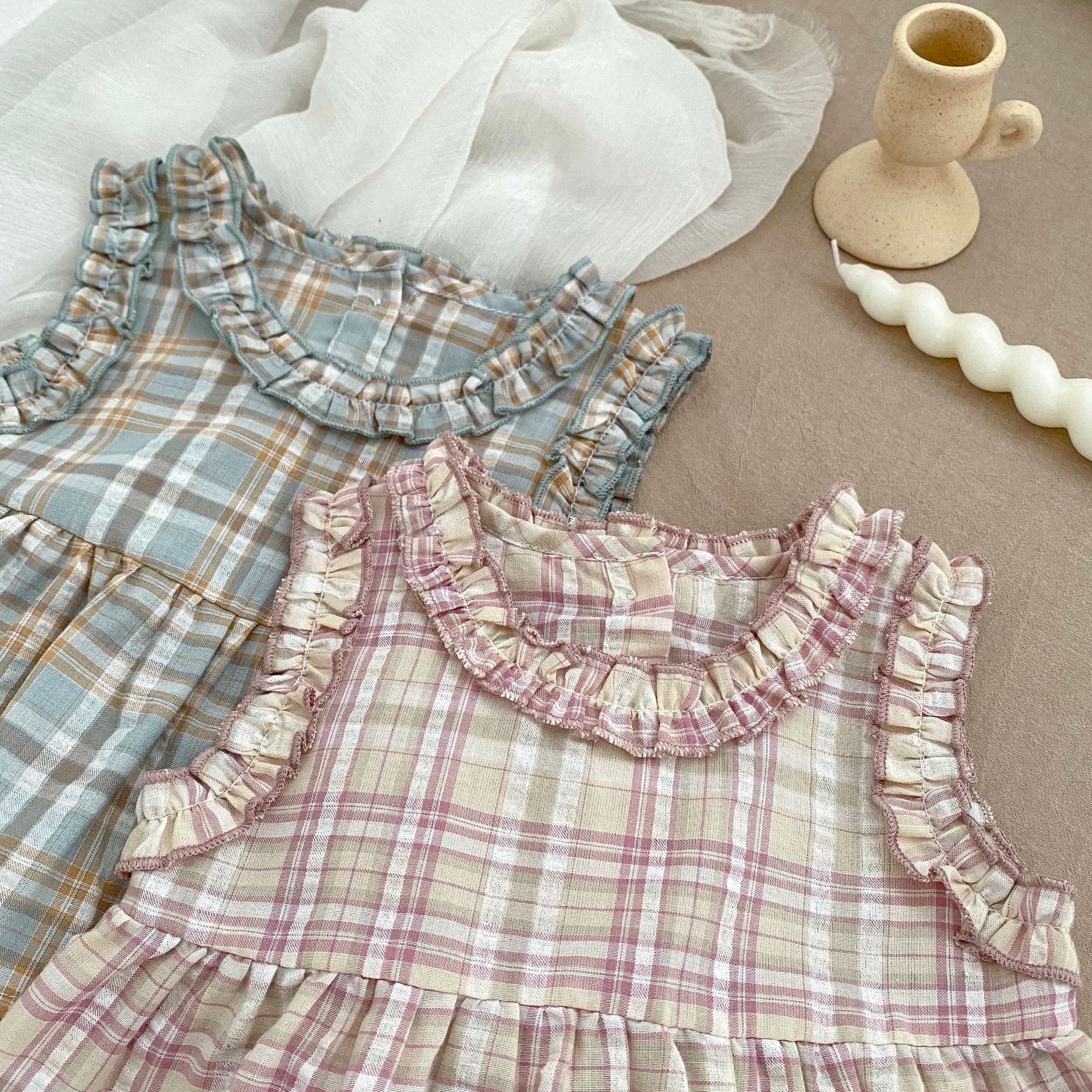 The plaid pattern of the vest and shorts adds a touch of classic charm to this modern outfit. Available in two vibrant colors, pink and blue, this set is perfect for any little fashionista. The sleeveless vest allows for easy movement, while the shorts provide a relaxed fit, making it easy for your child to run, jump, and play without any restrictions.