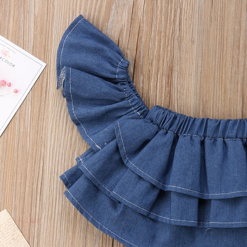 Dropship Summer Fashion Kids Baby Girl Layers Denim Tops