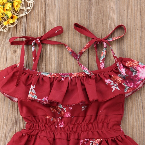 Model Number: Kids Baby Girl Off Shoulder Strap Belt Ruffles Romper Dress