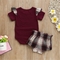 Model Number: Romper Tops Plaid Shorts Outfits Set